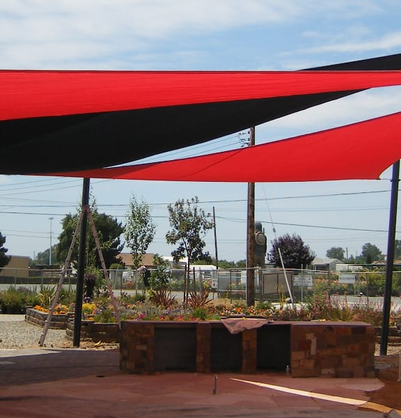 Goodwin-Cole’s commercial shade sails utilize premium, heavy-duty fabrics specifically designed for maximum sun protection and long-lasting outdoor performance. Made primarily from high-density polyethylene (HDPE) and other specialized outdoor textiles, our shade fabrics consistently block between 95% and 99% of harmful UV rays, significantly reducing sun exposure risks for visitors and staff alike.