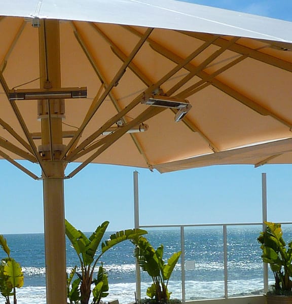 Mount compact, low-profile heaters within umbrella support structure to extend usability into cooler seasons or evening hours in outdoor patios and poolside lounges.