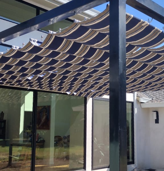 A slide-wire canopy can be installed onto the side of your home or current patio structure, such as a wood pergola, lattice, or trellis. We simply add the stainless-steel cables or tracks under your structure’s beams, so the canopy integrates seamlessly. This is an ideal choice if you already have a pergola or other frame – the canopy will enhance it with retractable shade while preserving your existing design.