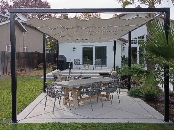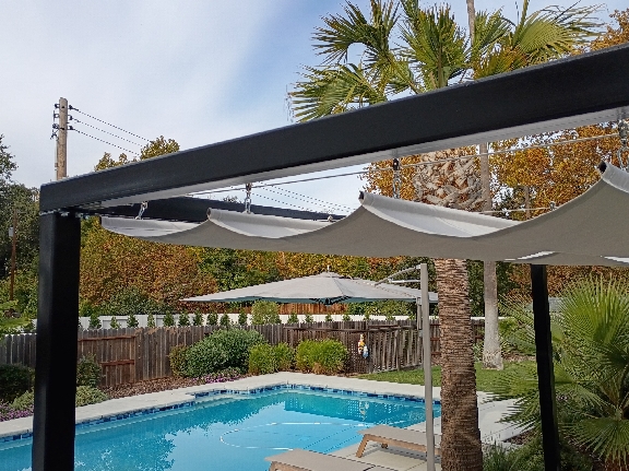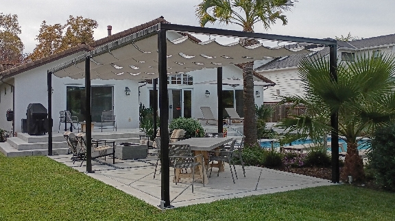 A slide-wire canopy can be installed onto the side of your home or current patio structure, such as a wood pergola, lattice, or trellis. We simply add the stainless-steel cables or tracks under your structure’s beams, so the canopy integrates seamlessly. This is an ideal choice if you already have a pergola or other frame – the canopy will enhance it with retractable shade while preserving your existing design.