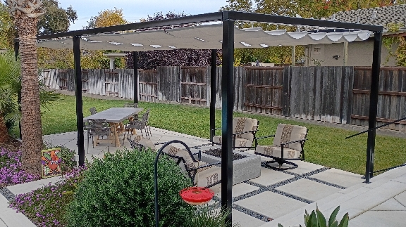 Our slide-wire canopies are custom-designed to perfectly fit your space. We build to any length or configuration needed, so you can cover small patios or expansive areas seamlessly. The design is highly adaptable and the canopy can attach to an existing pergola or trellis, the side of your home, or we can create a custom frame for it as part of a new structure.