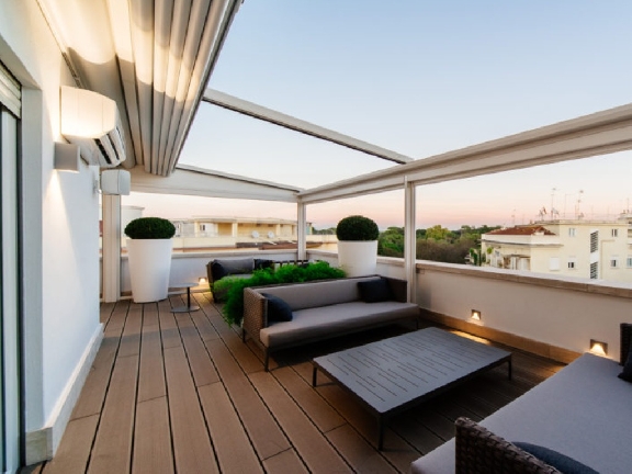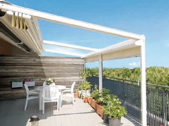 Thanks to the canopy’s clever design, the fabric stacks into neat folds at one end when retracted, and it can be secured so it stays put in windy conditions.